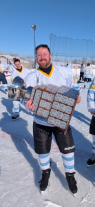 After getting my first job at my schools ice rink at 14, I found a pair of skates in the lost and found and got out there as much as I could. I played some organized games in High School, but nothing major. After High School I enlisted in the Marine Corps and deployed to Afghanistan. I was medically separated after injuries sustained in combat and came back home to Wisconsin where I met my now spouse. After a part time Zamboni job fell in my lap, I fell in love with the game all over again and had the itch to get back out there. I was drawn to the MGHA after I came to watch a friend play and saw that no matter win or lose, everyone seemed to be having a great time, and that's what I want out of the game. In my professional life, I work for the Wisconsin Department of Veterans Affairs and I help Unhoused and At-Risk Veterans obtain resources. In my personal life, I live with my Spouse in Marshall with our 3 dogs. We play in summer volleyball leagues, play trivia when time allows, and you can usually catch us at any Pat McCurdy show in the Madison area.