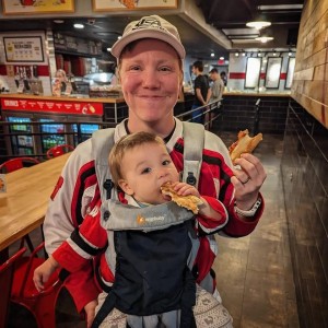 I started playing hockey in October 2022 with the Sun Prairie Rage, and I've been hooked ever since! I'm a stay-at-home parent, I spend a lot of time out in the prairie or the marsh collecting seeds and removing invasive species and doing frog and snake surveys, and I'm a big Wisconsin women's hockey and PWHL fan.