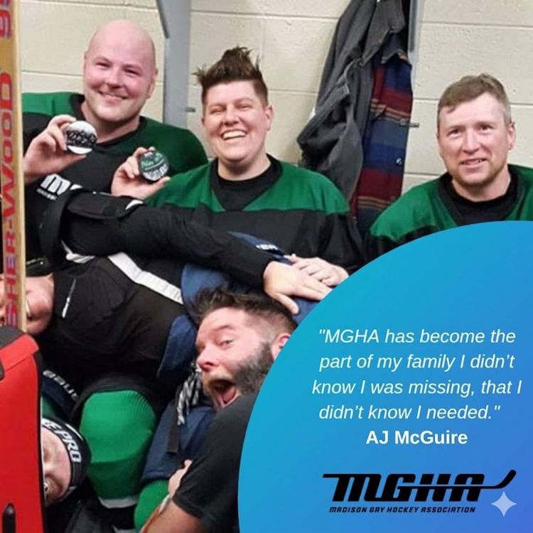 Forward to the current hockey season. A friend, Keith, from another group asked me if I would be willing to play goalie on his team for Madison Gay Hockey Association (MGHA). I’ve heard of MGHA and I have heard they are a great organization. But, should I be on a team for gay hockey? I am not gay.